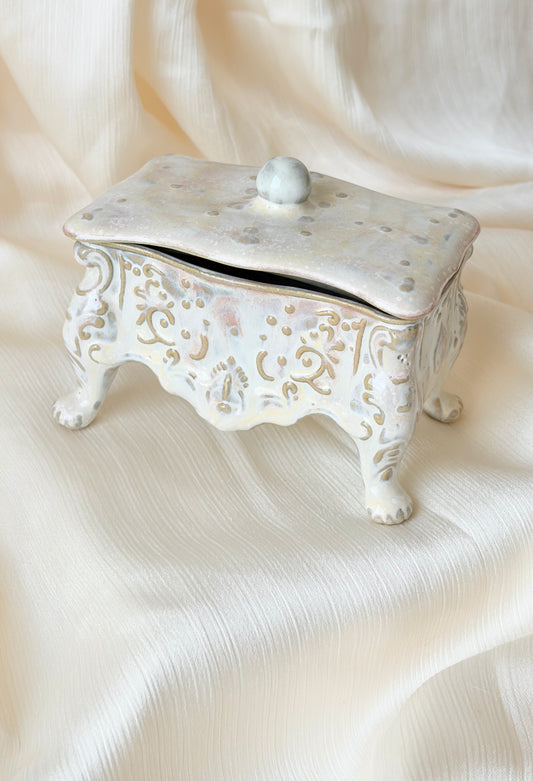 Szkatułka ceramiczna biała perłowa