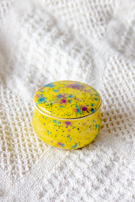 WyprzedaneSzkatułka ceramiczna biało-żółta mini