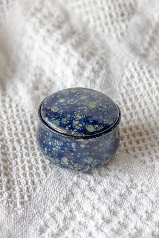 Szkatułka ceramiczna czarno-granatowa z plamkami mini