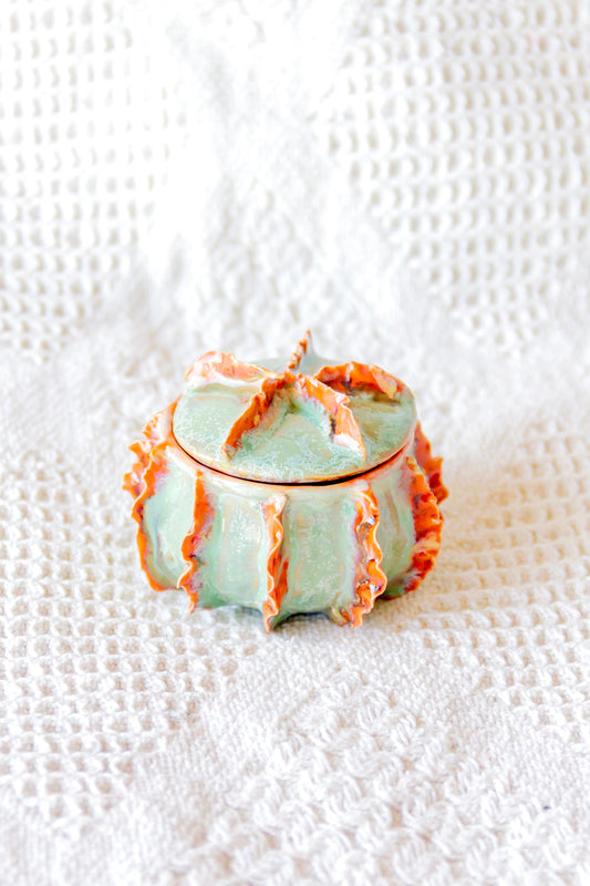 Szkatułka ceramiczna “Laminari” zielono-pomarańczowa mini