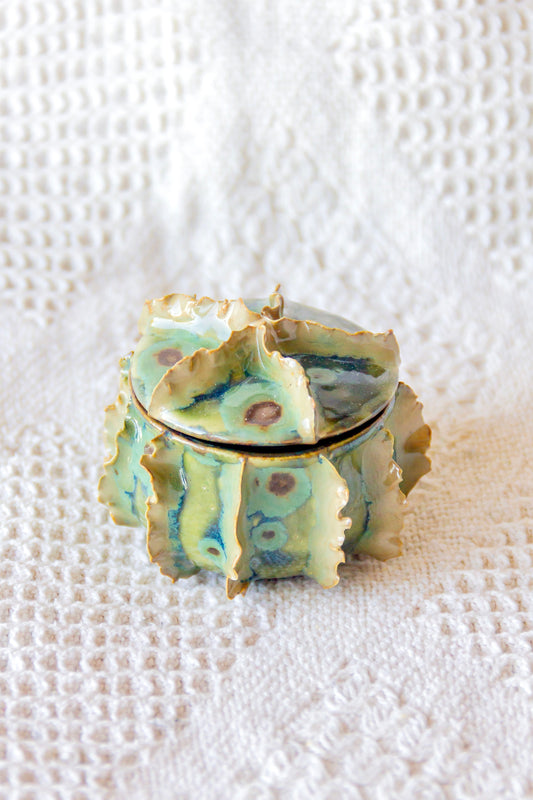 Szkatułka ceramiczna “Laminari” zielono-beżowa mini