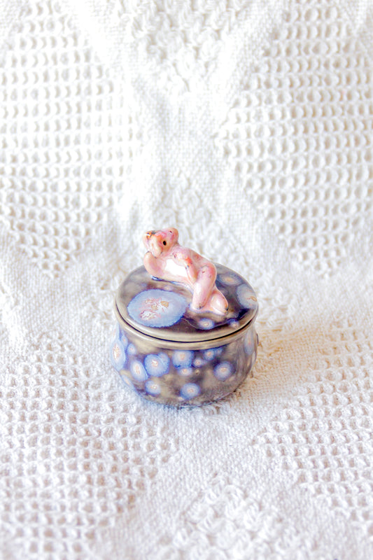 Szkatułka ceramiczna szaro-różowa z werlingiem mini