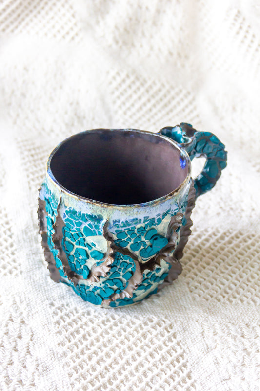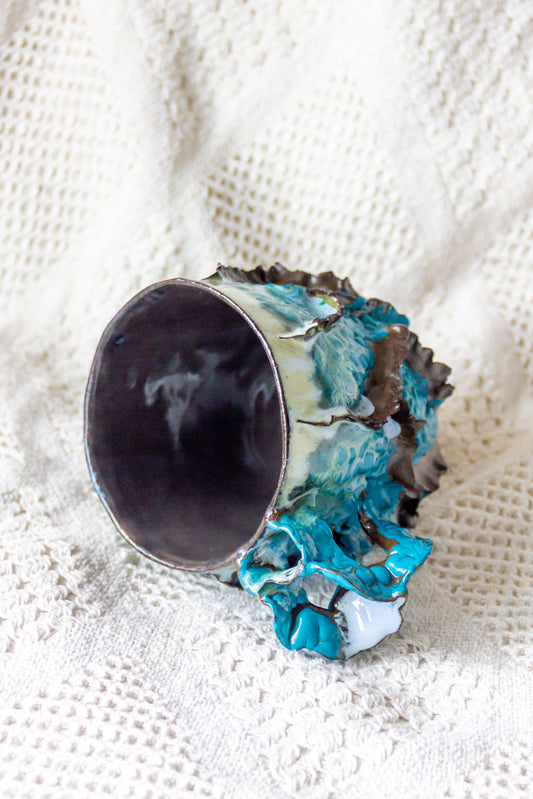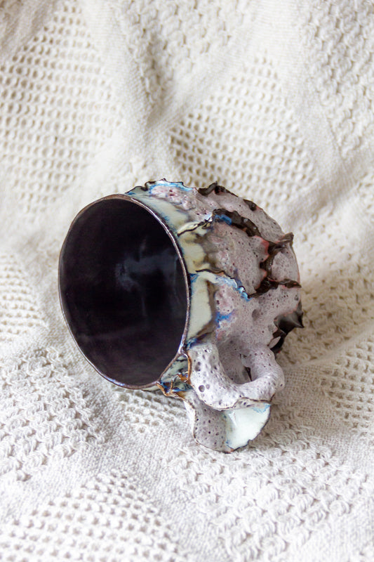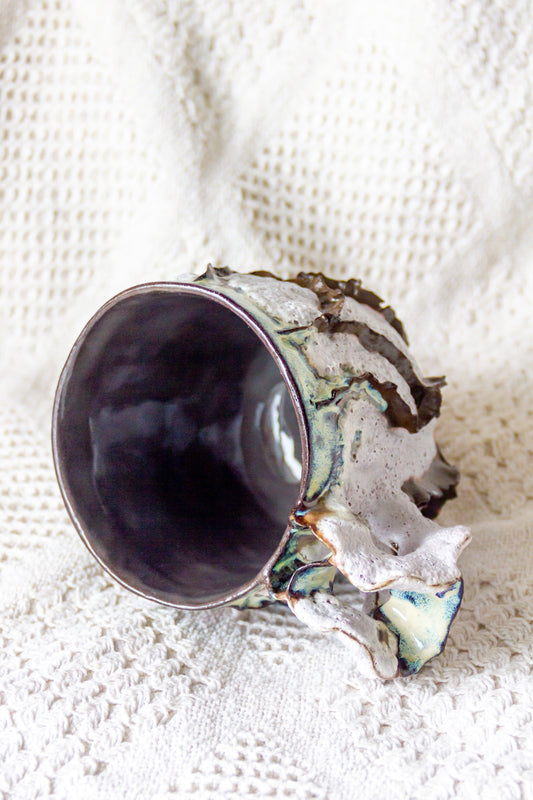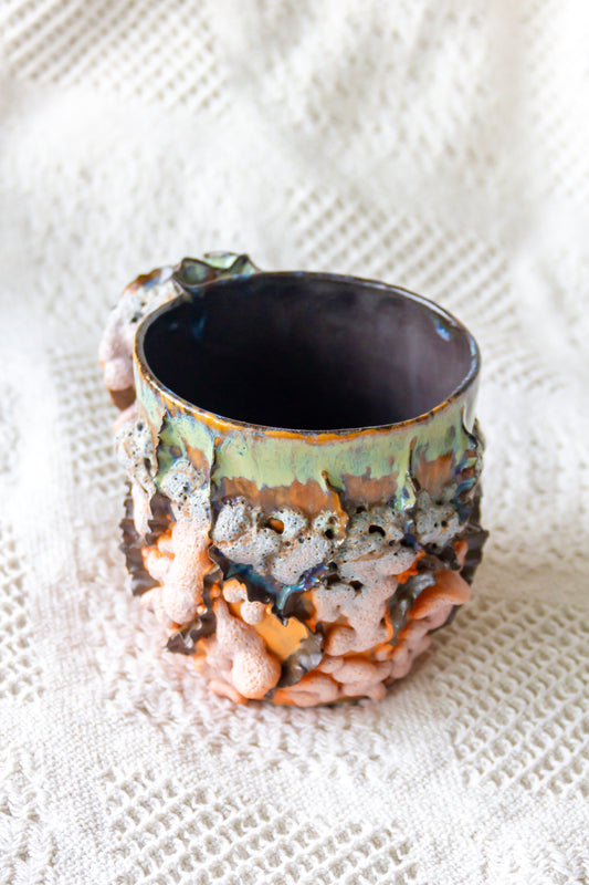 Kubek ceramiczny “Laminari” czarno-zielono-różowy z efektem piany