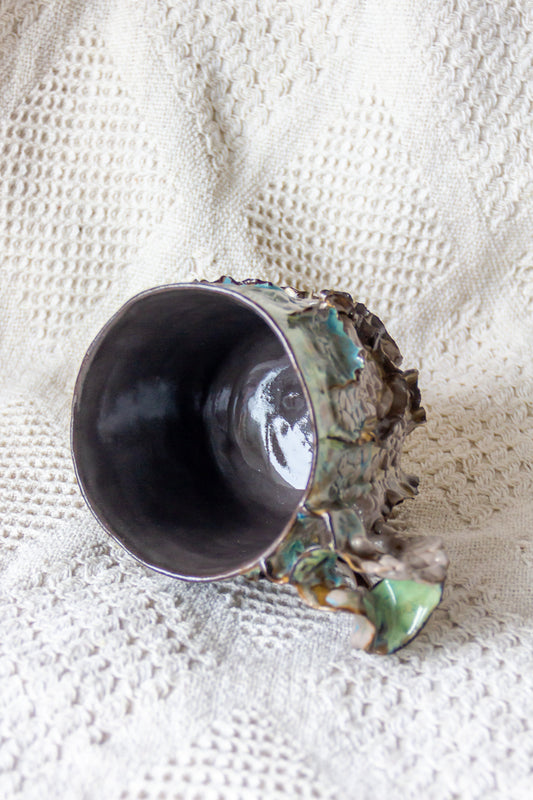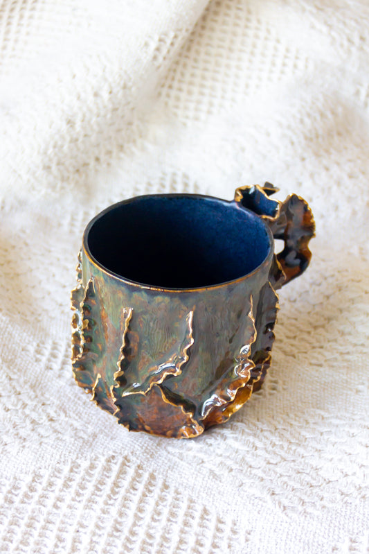 Kubek ceramiczny “Laminari” zielono-czarny ze złoceniem