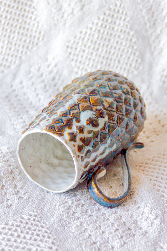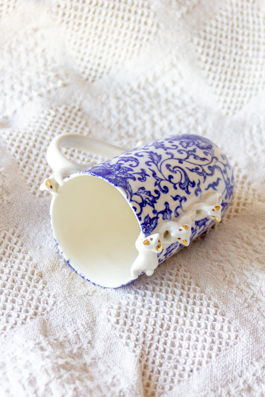 Kubek porcelanowy z werlingami biało-granatowy ze złoceniem