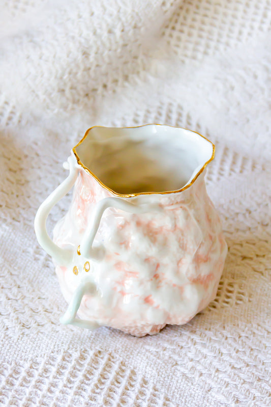 Kubek porcelanowy “Couroupita” biało-różowy ze złoceniem