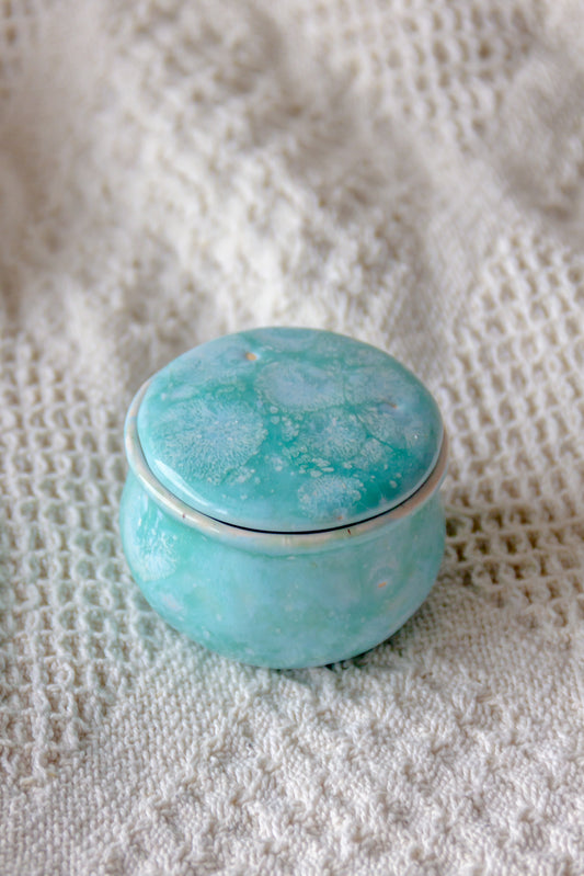 Szkatułka ceramiczna niebiesko-biała z plamkami mini