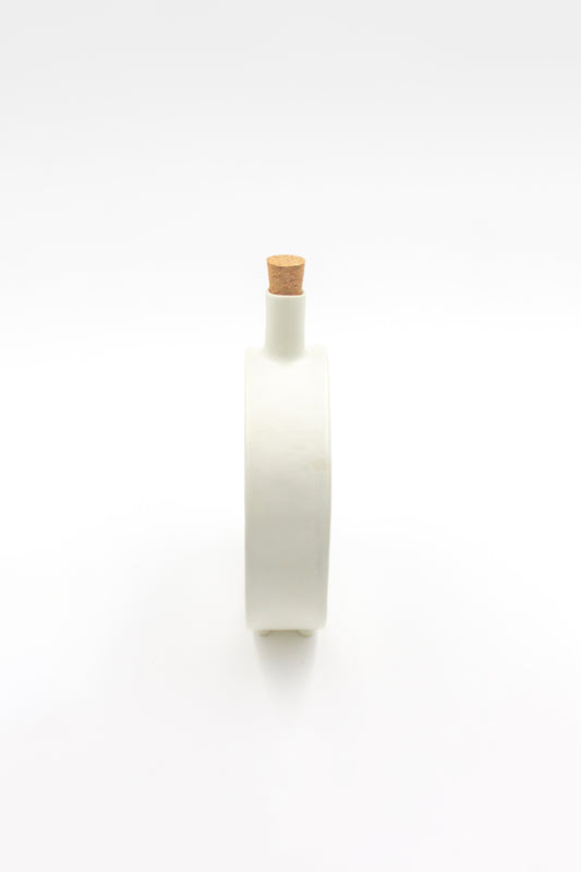 Mała butelka ceramiczna ze wzorem w białym kolorze