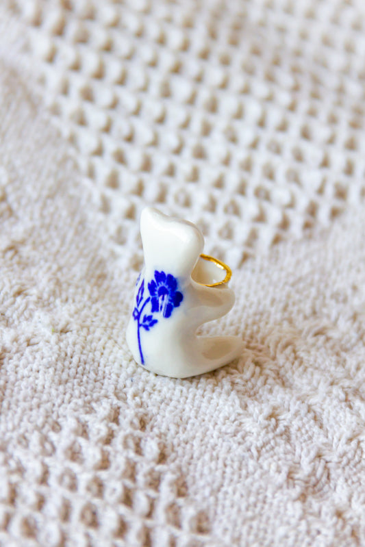 Kubek porcelanowy z werlingami biało-granatowy ze złoceniem