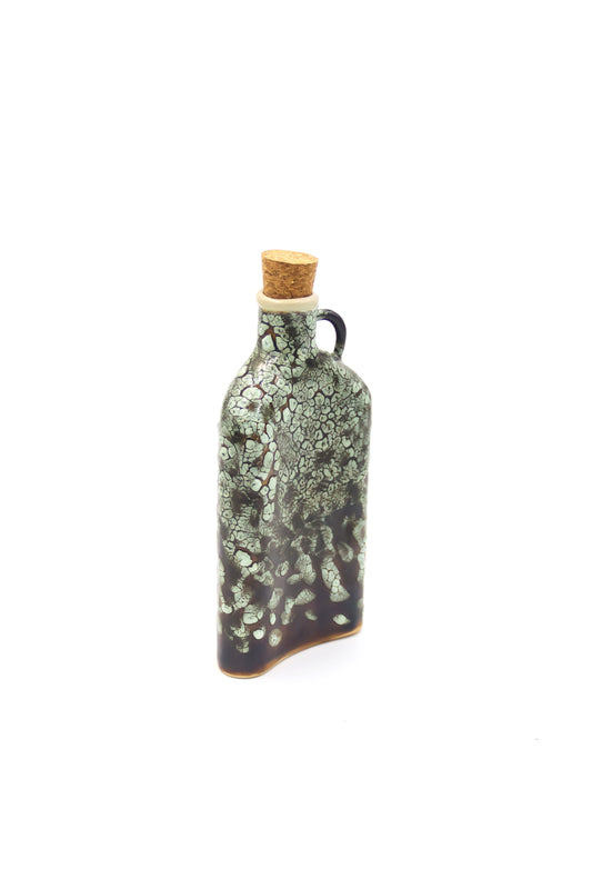 Buteleczka ceramiczna w kolorze zielono-brązowym