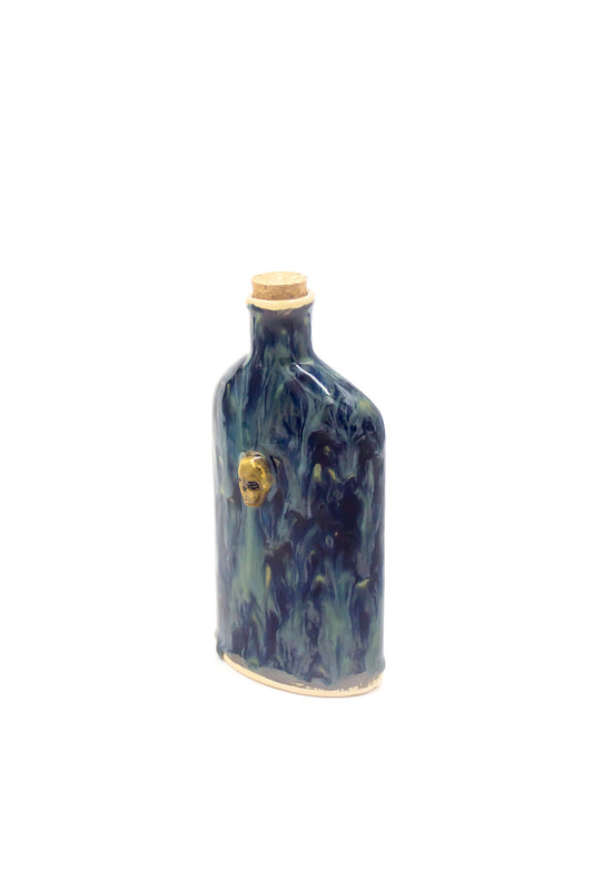 Butelka ceramiczna w kolorze granatowo-zielonym z czaszką