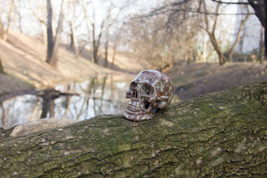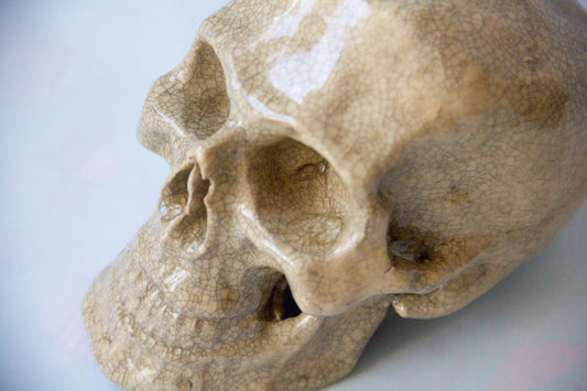Czaszka ceramiczna w kolorze beżowym oraz efektem krakle