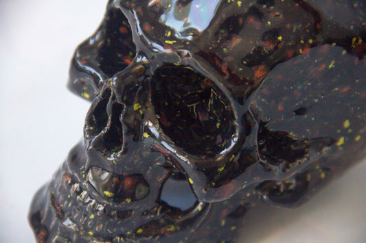 Czaszka ceramiczna w czarnym kolorze z kolorowymi kropkami