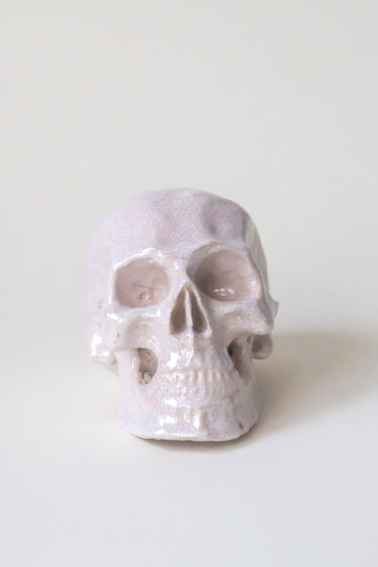 Czaszka ceramiczna w białym kolorze oraz efektem krakle