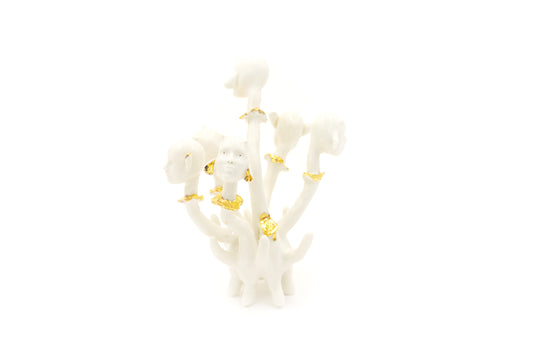 Istota «Charlotte» wielogłowa, rzeźba ceramiczna ze złoceniem.