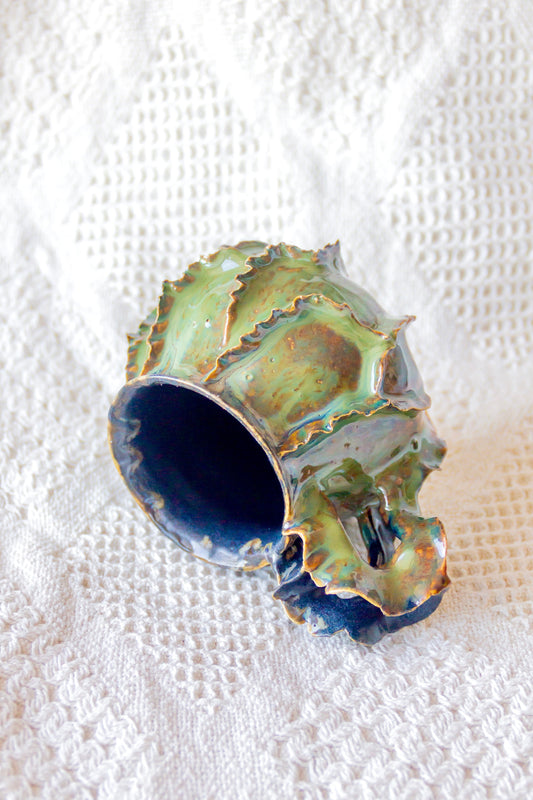 Kubek ceramiczny “Laminari” zielono-czarny ze złoceniem