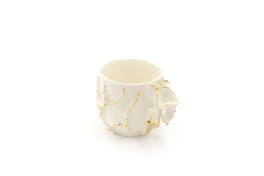 WyprzedaneKubek porcelanowy pomarańczowy ze złoceniem