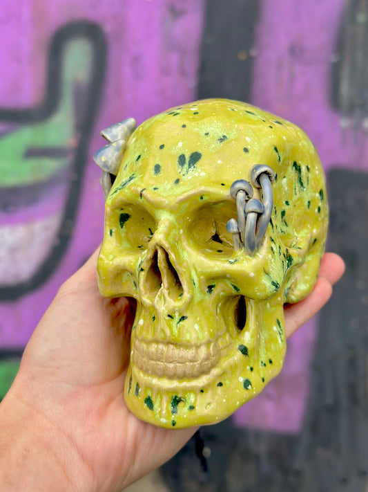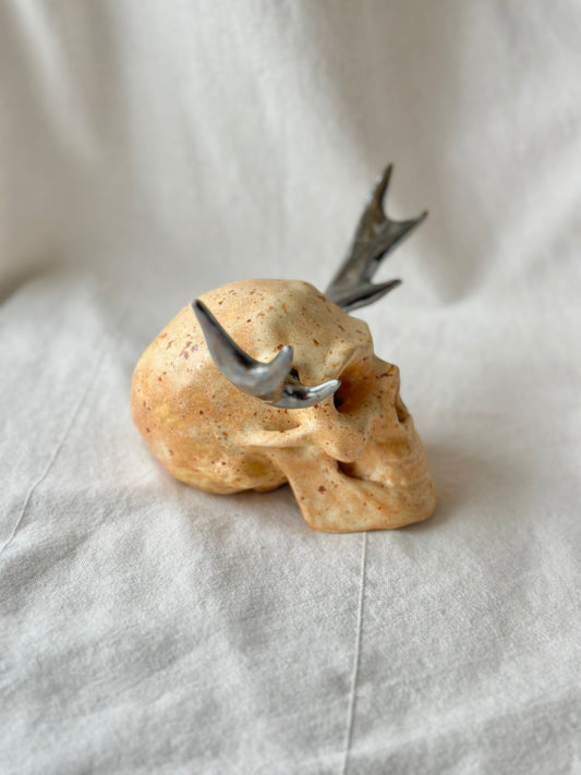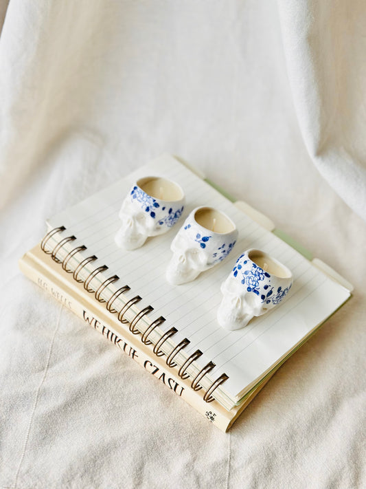 Świeca sojowa „whisky” w czaszce porcelanowej