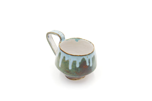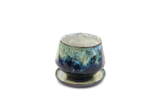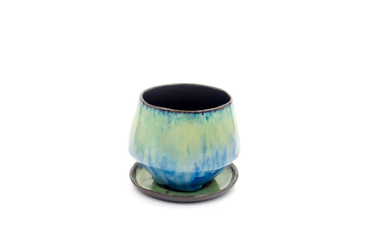Czarka ceramiczna w kolorze niebiesko-zielonym ze spodkiem