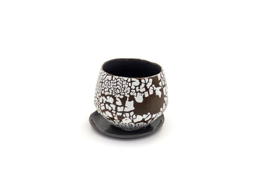 Czarka ceramiczna w kolorze czarno-białym ze spodkiem