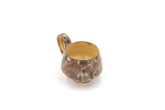 Kubek ceramiczny w kolorze brązowym oraz plamkami