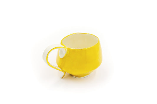 Kubek ceramiczny w kolorze żółtym oraz kropkami