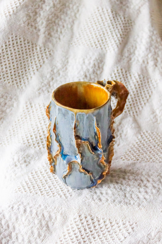 Kubek ceramiczny “Laminari” w kolorze niebiesko-piaskowym