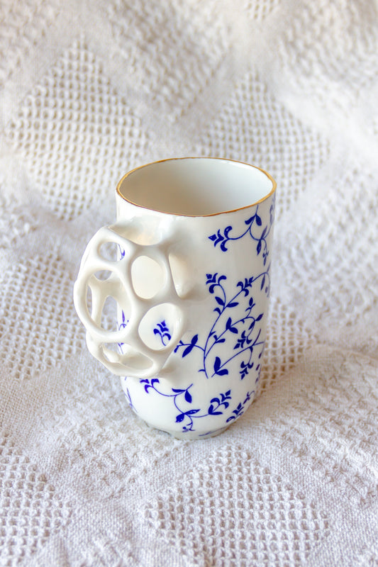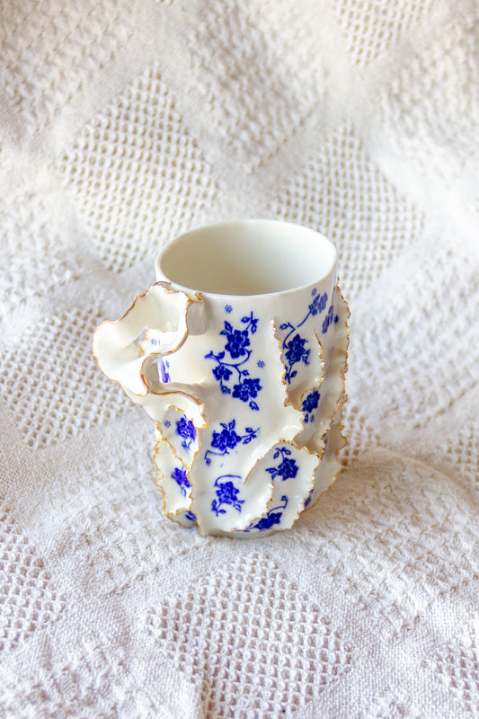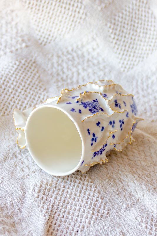 Kubek porcelanowy „Laminari” biało-granatowy ze złoceniem
