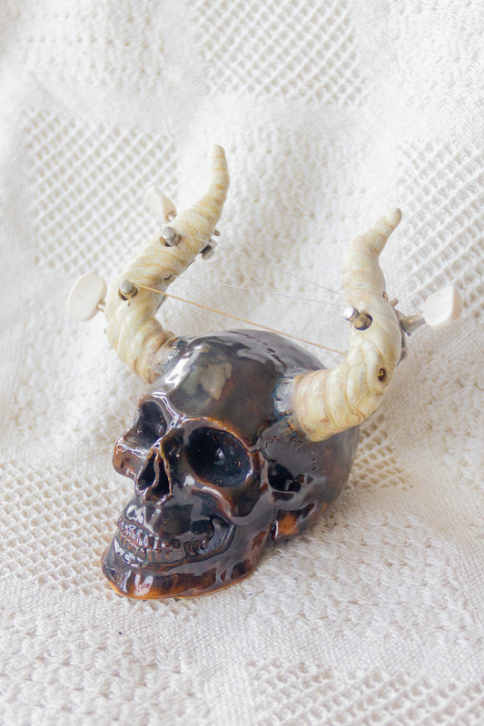 Czaszka-szkatułka ceramiczna brązowo-czarna