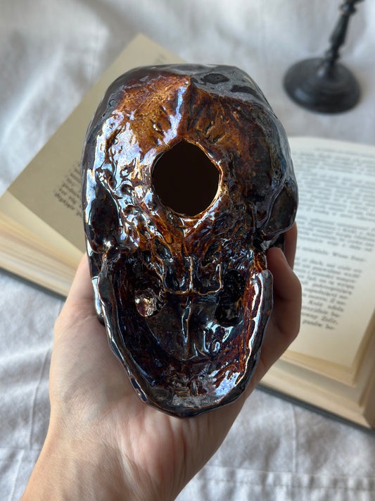 WyprzedaneCzaszka ceramiczna brązowo-metaliczna