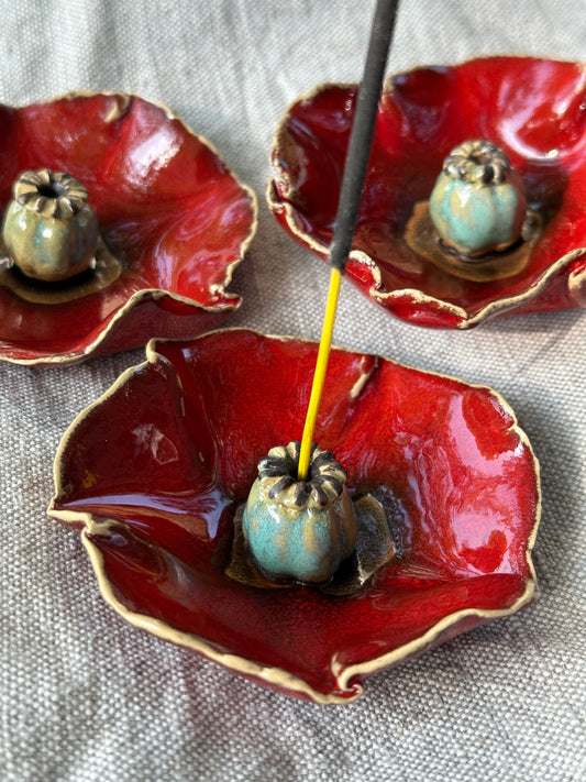 Podstawka pod kadzidełko w kształcie kwiatu maku