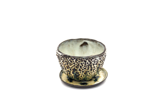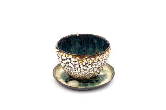 Miseczka ceramiczna w kolorze zielono-brązowym ze spodkiem