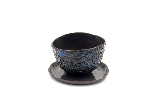 Miseczka ceramiczna w kolorze czarno-granatowym ze spodkiem