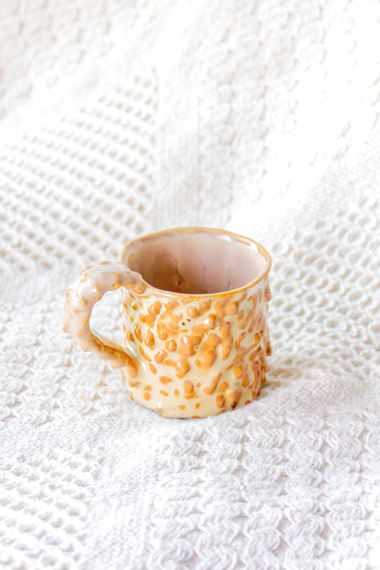 WyprzedaneKubek ceramiczny w kolorze beżowo-czerwonym