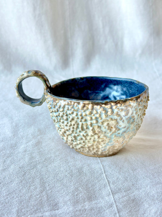 Filiżanka ceramiczna “Pox’ w kolorze żółto-niebieskim