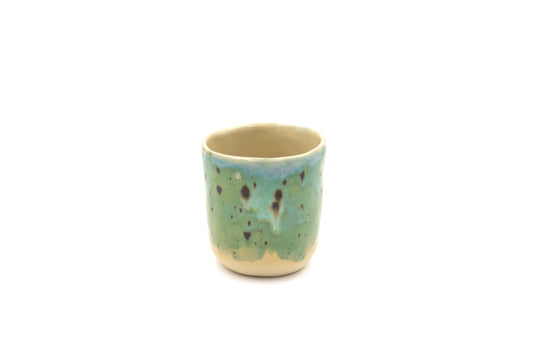 Kubek ceramiczny bez ucha w kolorze turkusowym z plamkami