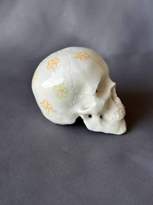 Czaszka porcelanowa mini w kwiaty z drobną wadą