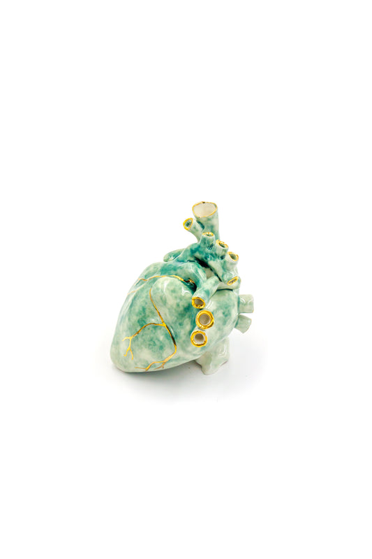 WyprzedaneSerce porcelanowe zielone ze złoceniem