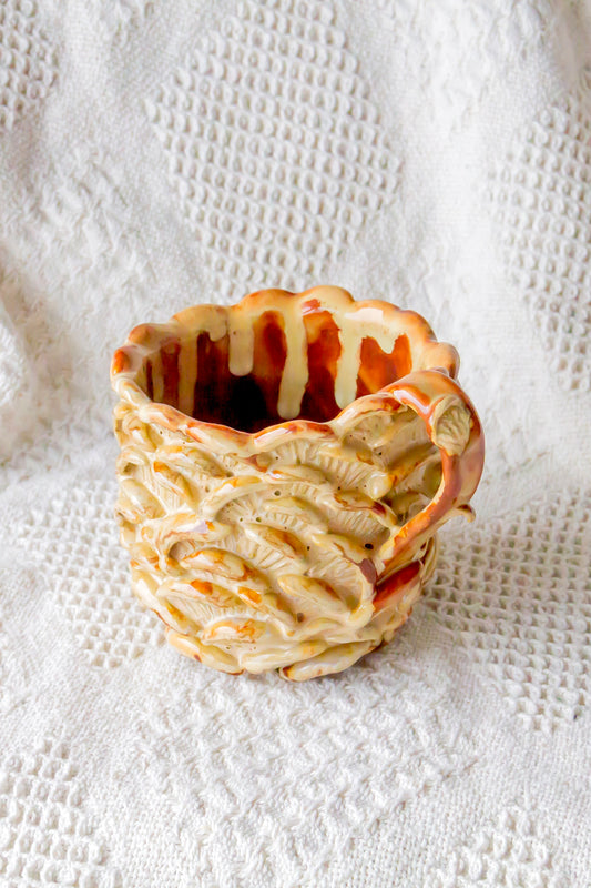 Szkatułka ceramiczna “Shrooms” pomarańczowo-beżowa mini