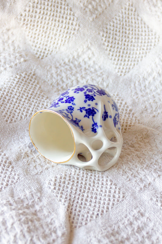 Kubek porcelanowy „Tripto” biało-granatowy ze złoceniem
