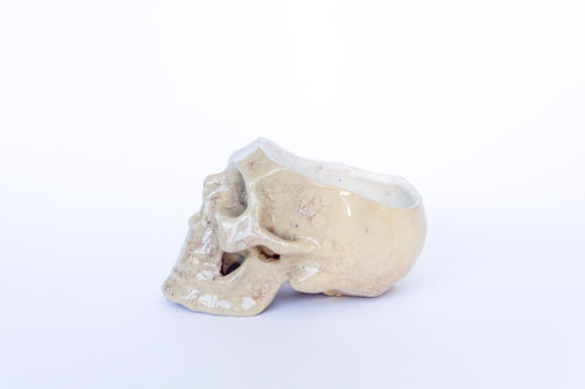 Czaszka-szkatułka w kolorze biało-beżowym oraz efektem krakle