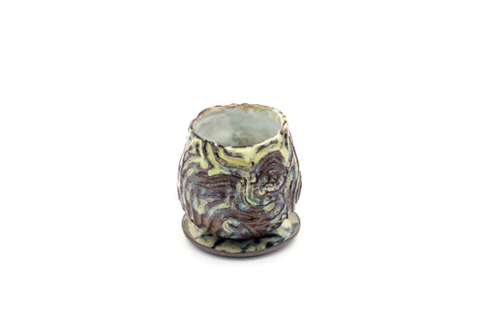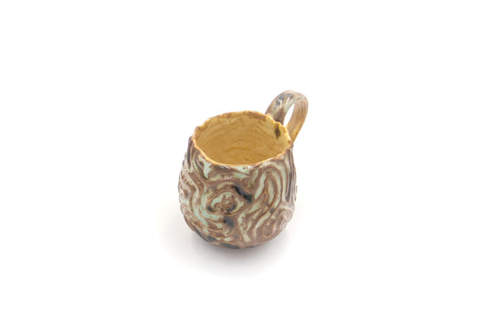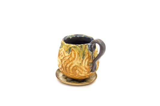 Czarka ceramiczna w kolorze zielono-brązowym ze spodkiem