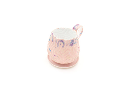 Kubek ceramiczny w kolorze różowym ze spodkiem