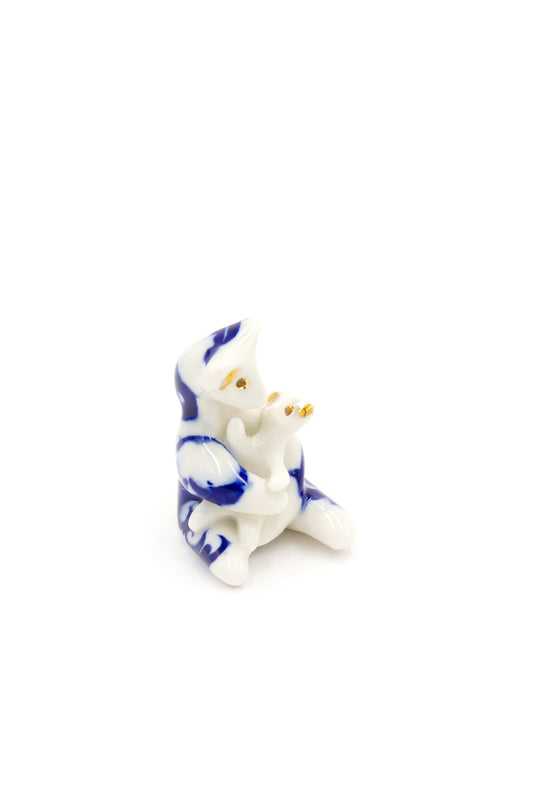 Werlingtin avec un enfant sur la tête, sculpture en porcelaine avec dorure