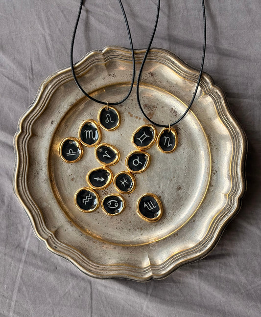 Naszyjnik z porcelanową zawieszką ze znakiem zodiaku
