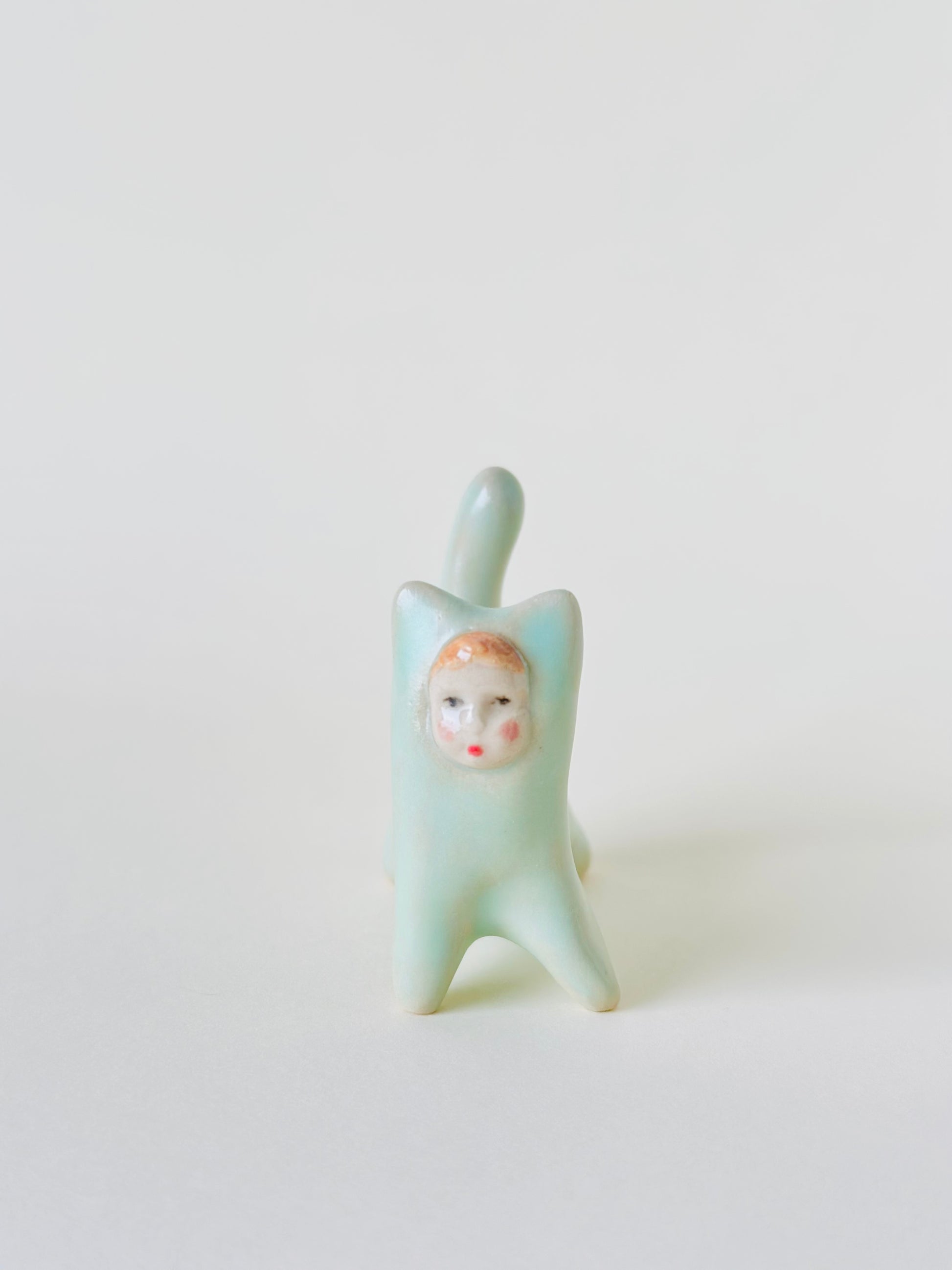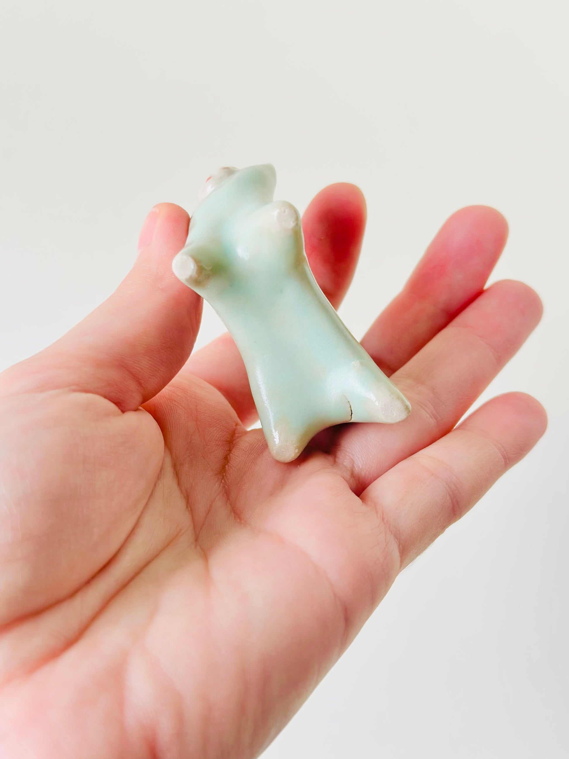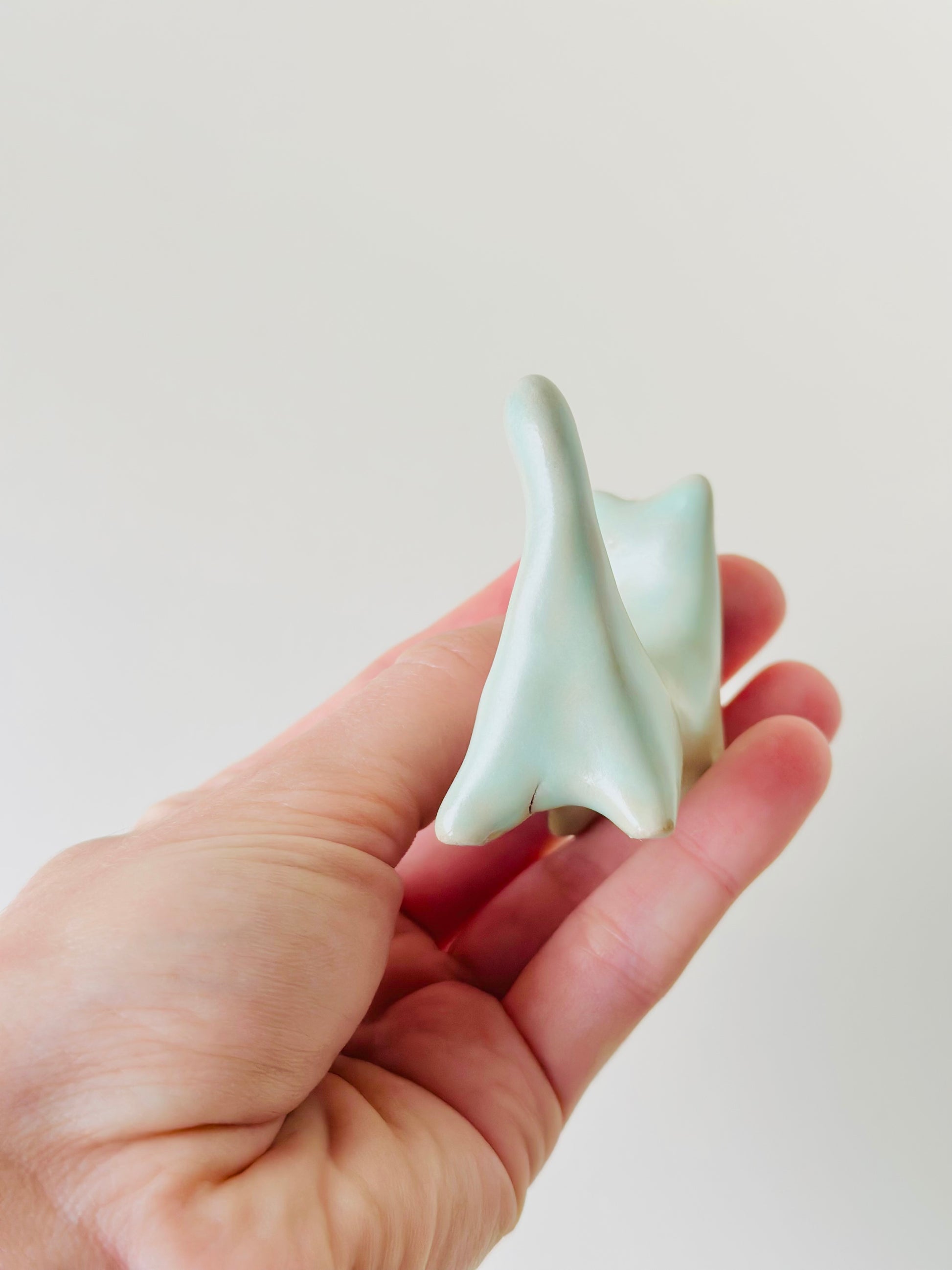 Une figurine en céramique faite à la main imitant le personnage du vampire Vladislav du film "What We Do in the Shadows". Elle a été écartée en raison de traces visibles de collage - la figurine a été endommagée dans le four et a été recollée avant la deuxième cuisson de glaçage.