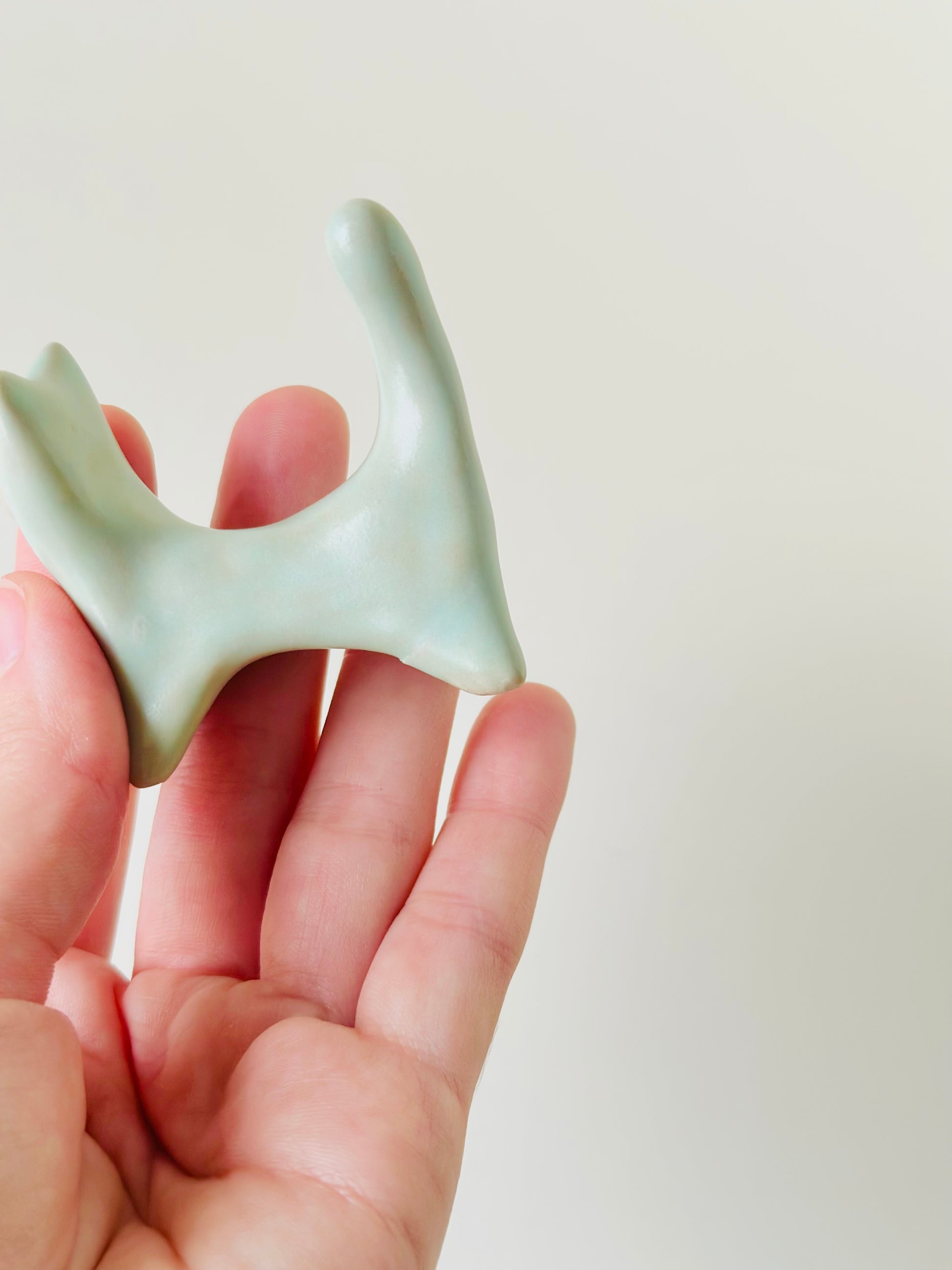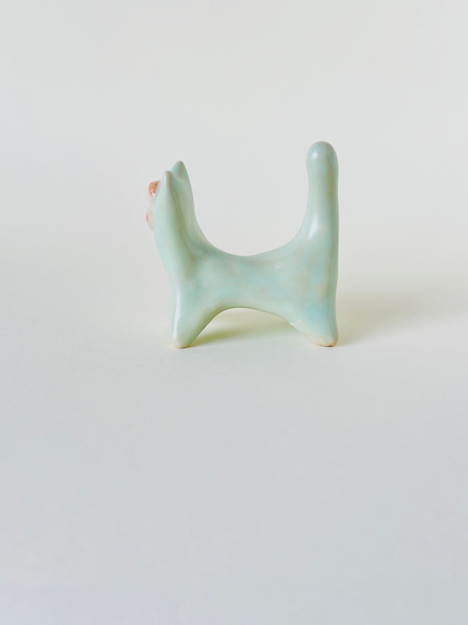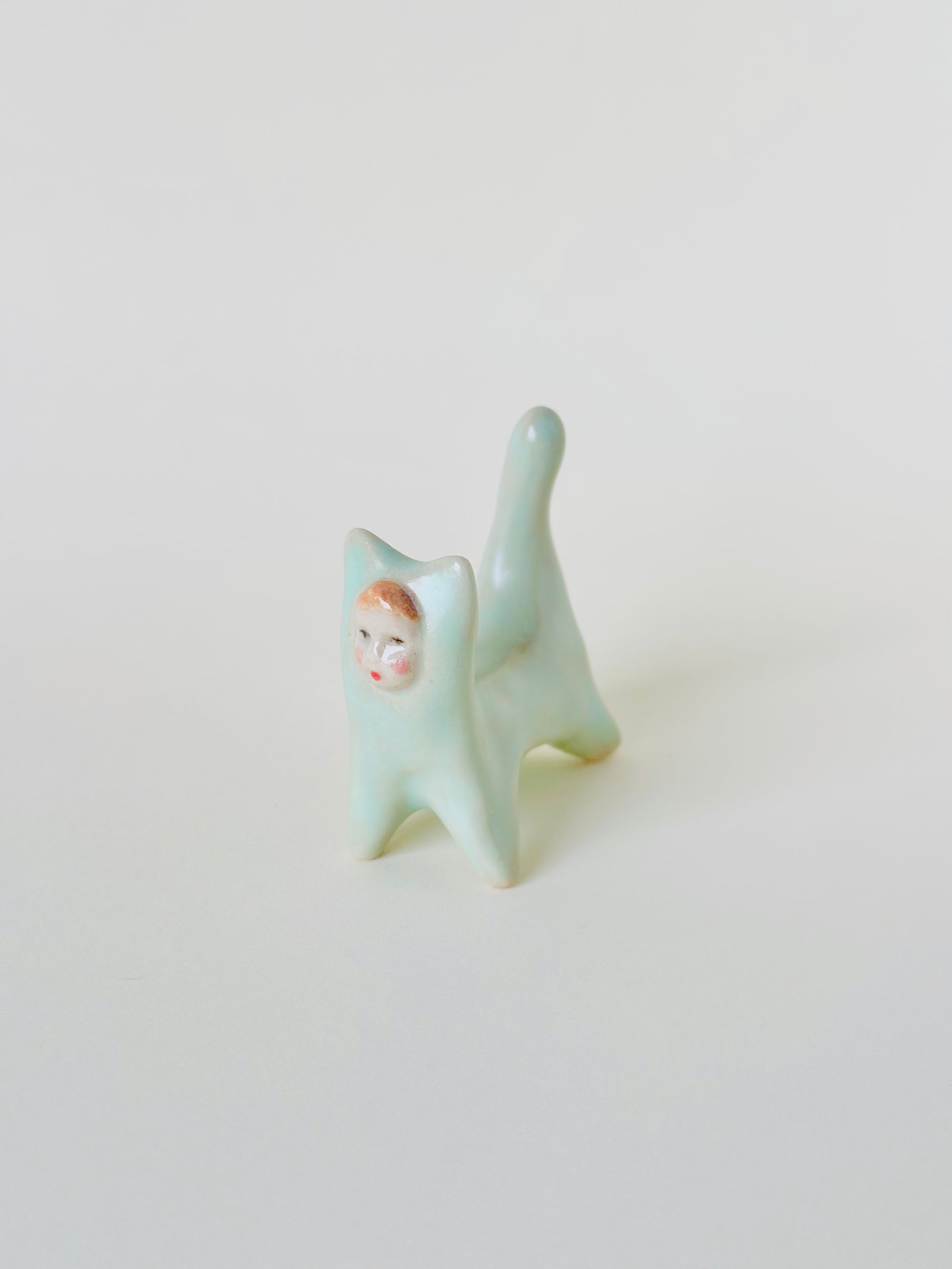 Une figurine en céramique faite à la main imitant le personnage du vampire Vladislav du film "What We Do in the Shadows". Elle a été écartée en raison de traces visibles de collage - la figurine a été endommagée dans le four et a été recollée avant la deuxième cuisson de glaçage.