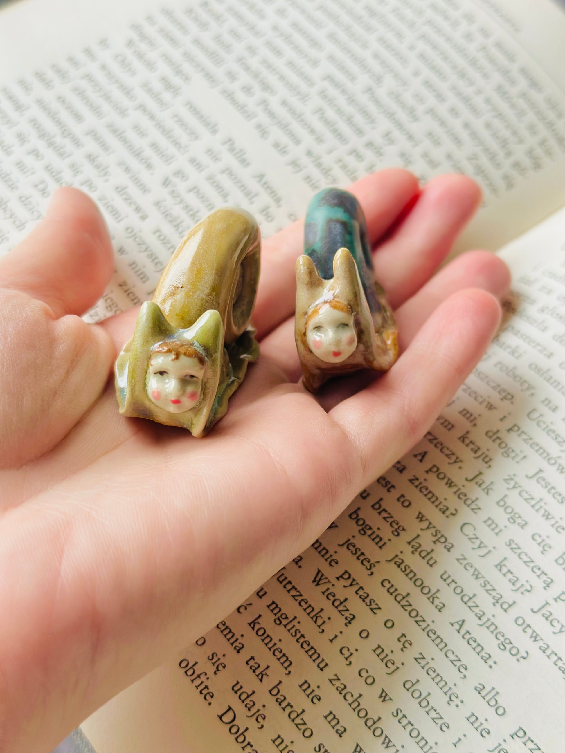 Une figurine en céramique faite à la main imitant le personnage du vampire Vladislav du film "What We Do in the Shadows". Elle a été écartée en raison de traces visibles de collage - la figurine a été endommagée dans le four et a été recollée avant la deuxième cuisson de glaçage.