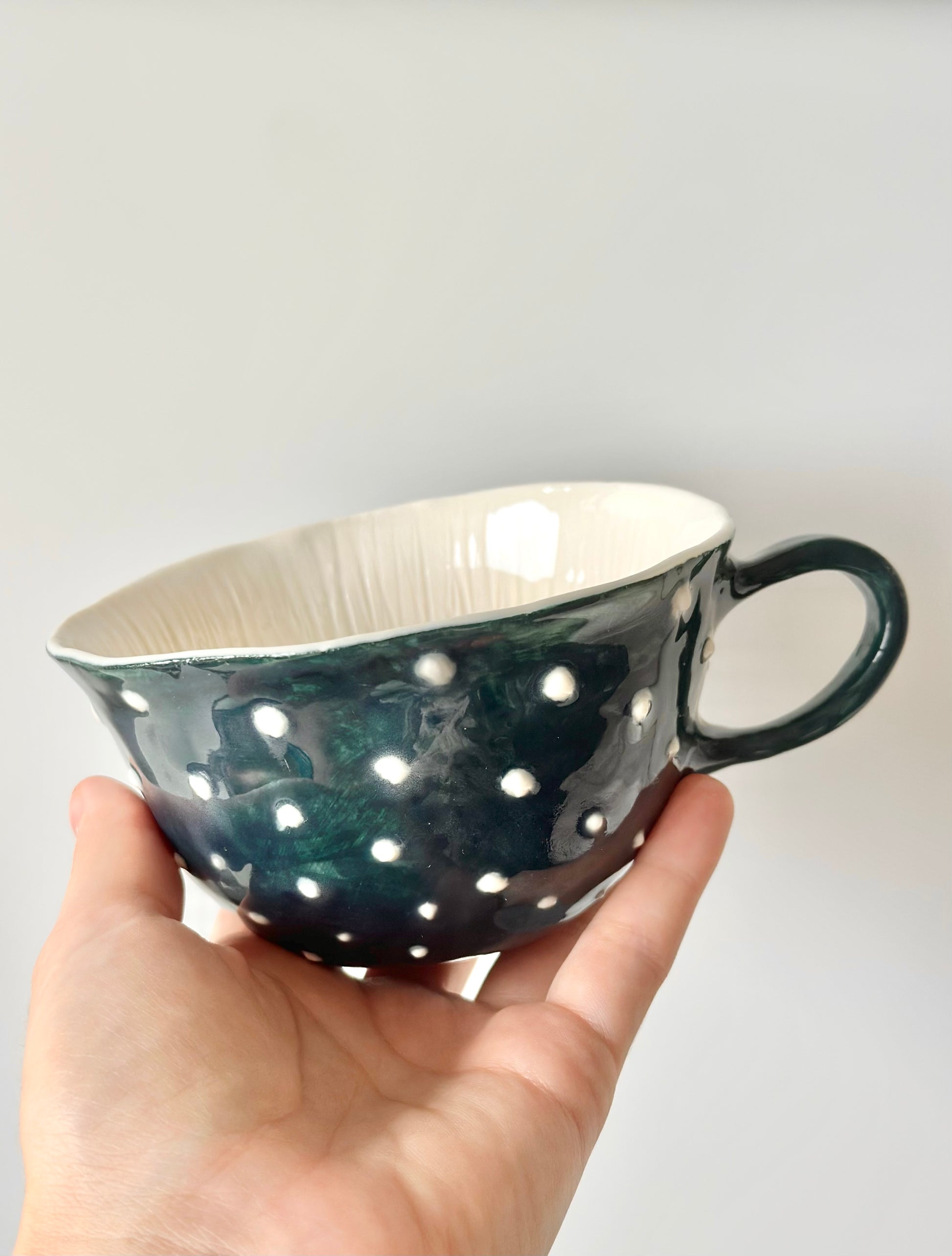 Belle tasse en porcelaine faite à la main avec un motif floral et une dorure dorée. Son aspect chaleureux et cosy est parfait pour des moments de détente avec votre thé ou café préféré, ajoutant un charme et une élégance uniques.