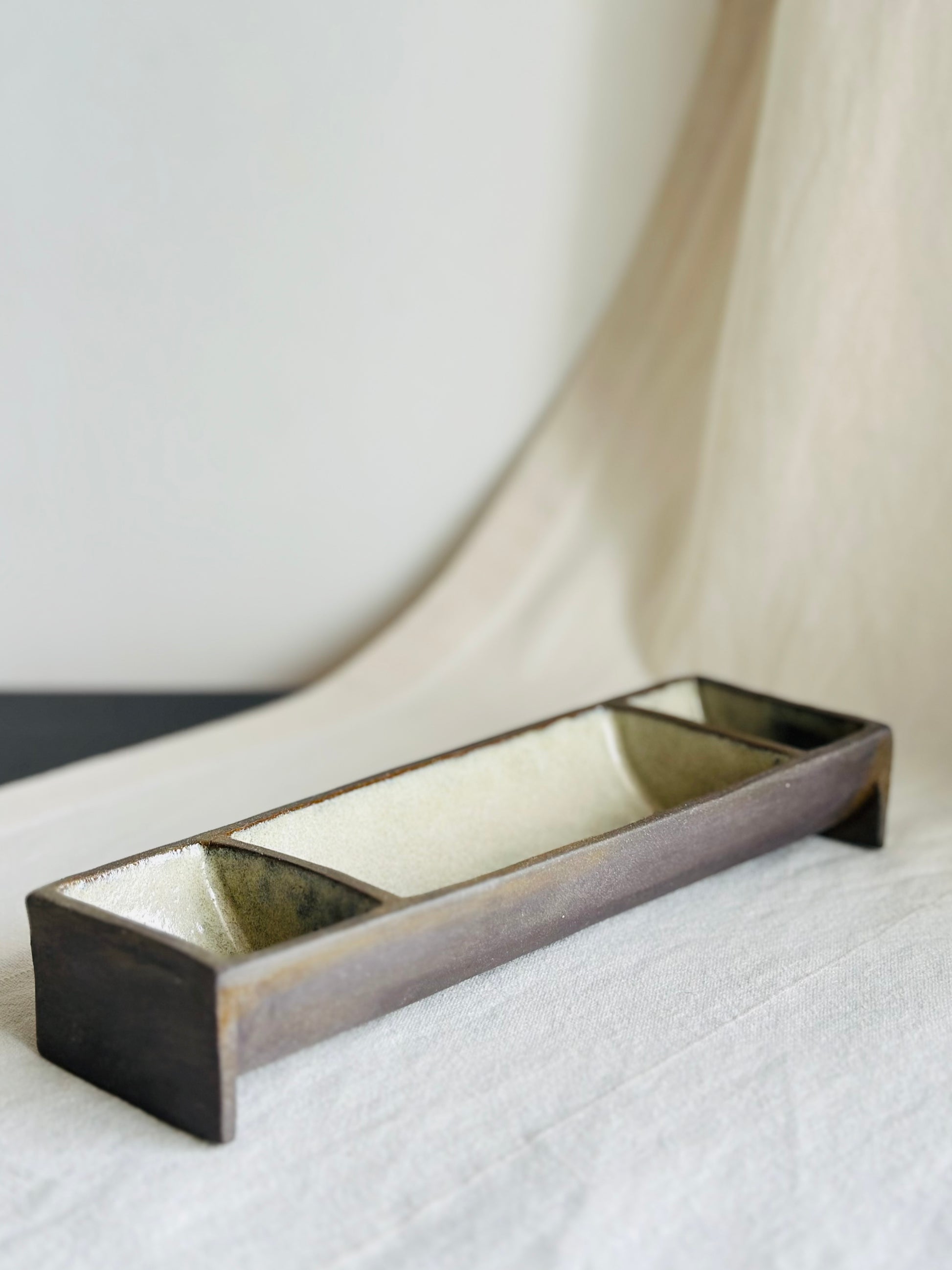 Un ensemble à sushi en céramique unique. L'ensemble se compose de 4 assiettes (2 plus grandes et 2 plus petites) en forme de feuilles et de 2 porte-baguettes. Belles couleurs brun miel d’automne. Parfait pour un cadeau.
